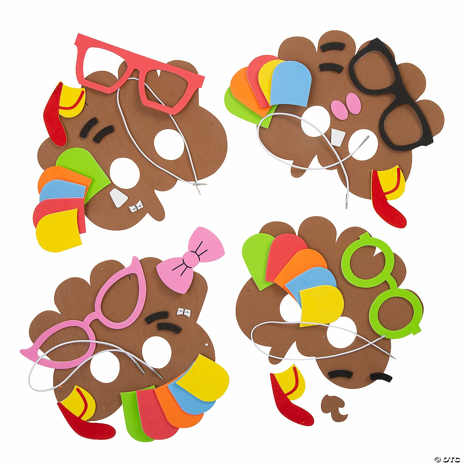 Everyone can be the main event at Thanksgiving with goofy gobble gobble masks. The whole family can participate in making turkey masks, or it can be a kids’ table activity that doubles as a photo prop. Includes self-adhesive foam shapes and elastic bands. 7 3/4″ x 6 3/4″ Makes 12. All craft kit pieces are pre-packaged for individual use. Kits include instructions. © OTC