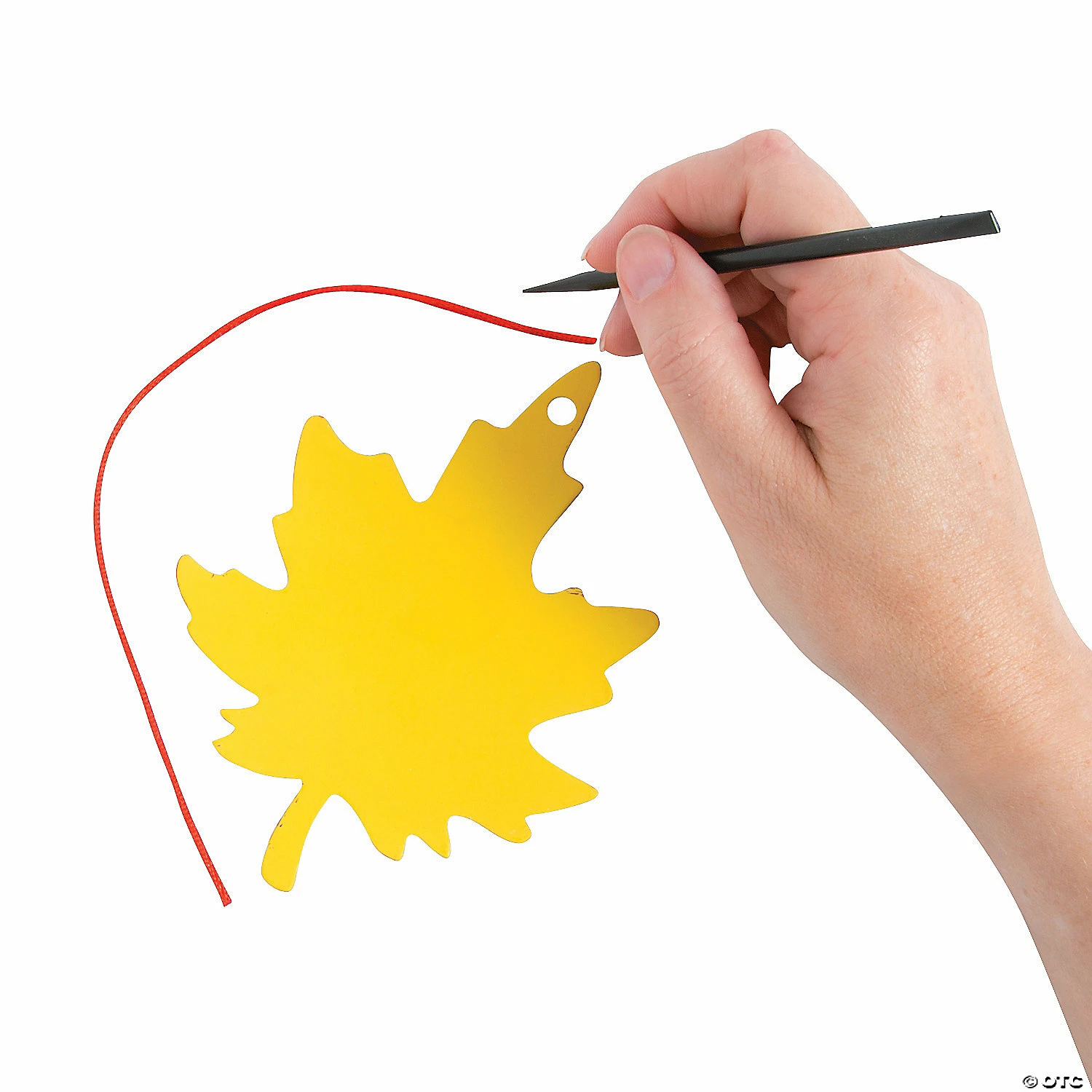 Scratch your own colorful designs into the beautiful fall leaf shapes. These paper leaves can be hung from tree branches, railings or doorknobs and can even be used as bookmarks! This colorful fall project is a fun craft for kids of all ages. Use these fall leaves as ornaments to decorate a year-round tree. Includes 24 leaves, 12 scratching tools and 24 satin cords. Cardstock. (2 dozen per unit) 5 1/4″ © OTC