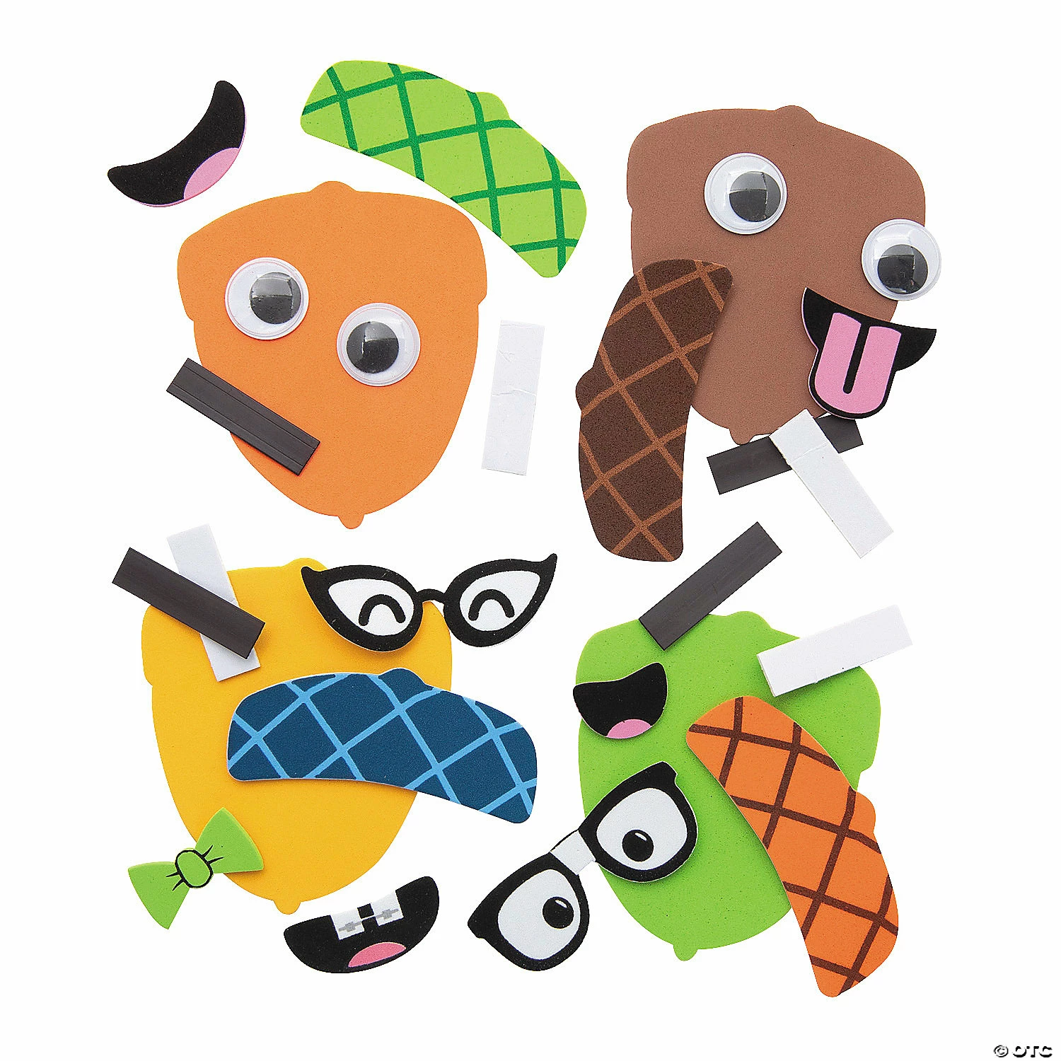 Help kids create some silly, smiling acorn magnets with this simple peel-and-stick craft kit. Great for a fall classroom craft or for a kids’ activity table at a Harvest Festival or autumn gathering, these goofy acorns are sure to make kids smile. Kids will enjoy the silliness of this craft and leaders will appreciate the simplicity of completion and cleanup. Includes self-adhesive foam pieces and googly eyes. 3 1/2″ x 4″ Makes 12. Kits include instructions. Magnets may be packaged separately from kits. Do not discard. © OTC