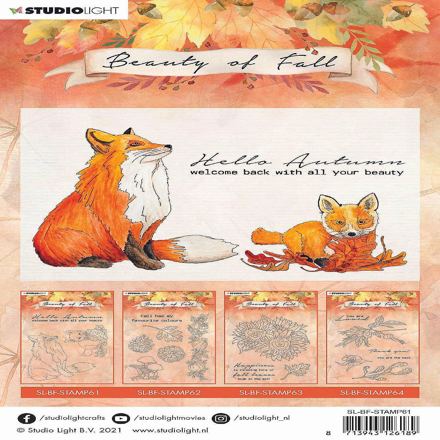 SL Clear Stamp Foxes Beauty Of Fall 105x148mm nr.61 This clear stamp set features 2 foxes and includes a seasonal appropriate sentiment which will make great additions to your next projects. The Beauty of Fall collection has all kinds of elements to make all the fall sceneries you want. The collection contains 4 A6 clear stamps with fall designs you can color and text stamps to finish off your projects. The collection also contains 4 A6 cutting die sets and 2 masks. Use the masks to set the base of the scenery with grass and leaves and add the cutting dies, stamps and other elements to add in all the details. Size: 4.1″ x 5.8″