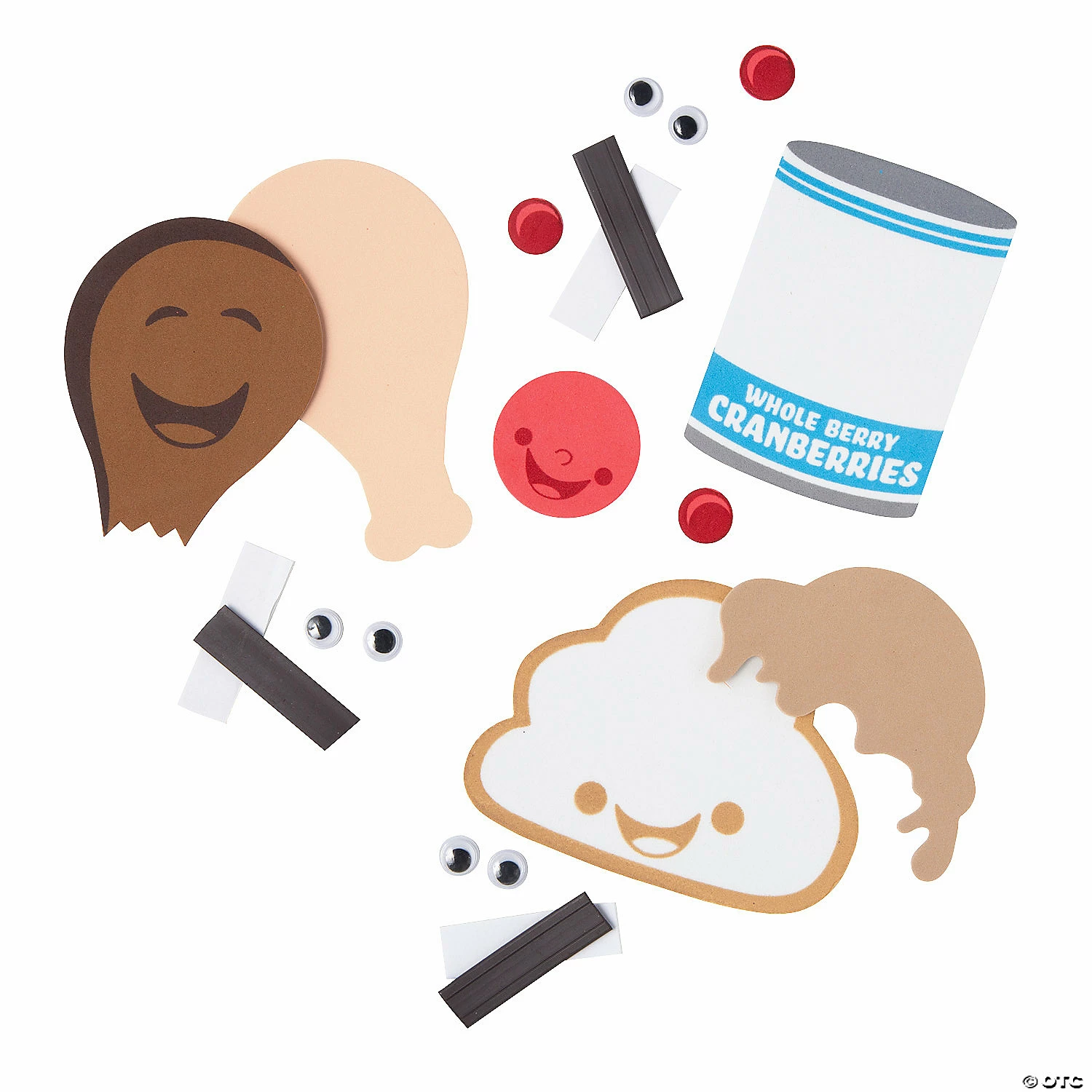 Get ready to gobble, gobble! This turkey, cranberry sauce and mashed potato magnet trio is the Thanksgiving craft activity that really makes a meal out of things. Kids can work on it for a Thanksgiving school project or at the kidsβ table on Thanksgiving day, but itβs also fun for older adults to make magnets as table favors. Includes plastic googly eyes and self-adhesive foam pieces. 2 1/2″ – 4″ x 3″- 4″ All craft kit pieces are pre-packaged for individual use. Magnets are packaged separately. Do not discard. Kits include instructions and extra pieces. Makes 12. Β© OTC